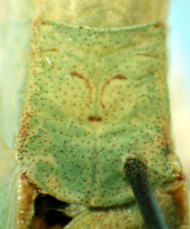 Photograph of dorsal pronotum of male, Obion County, Tennessee, by T. J. Walker, University of Florida.
