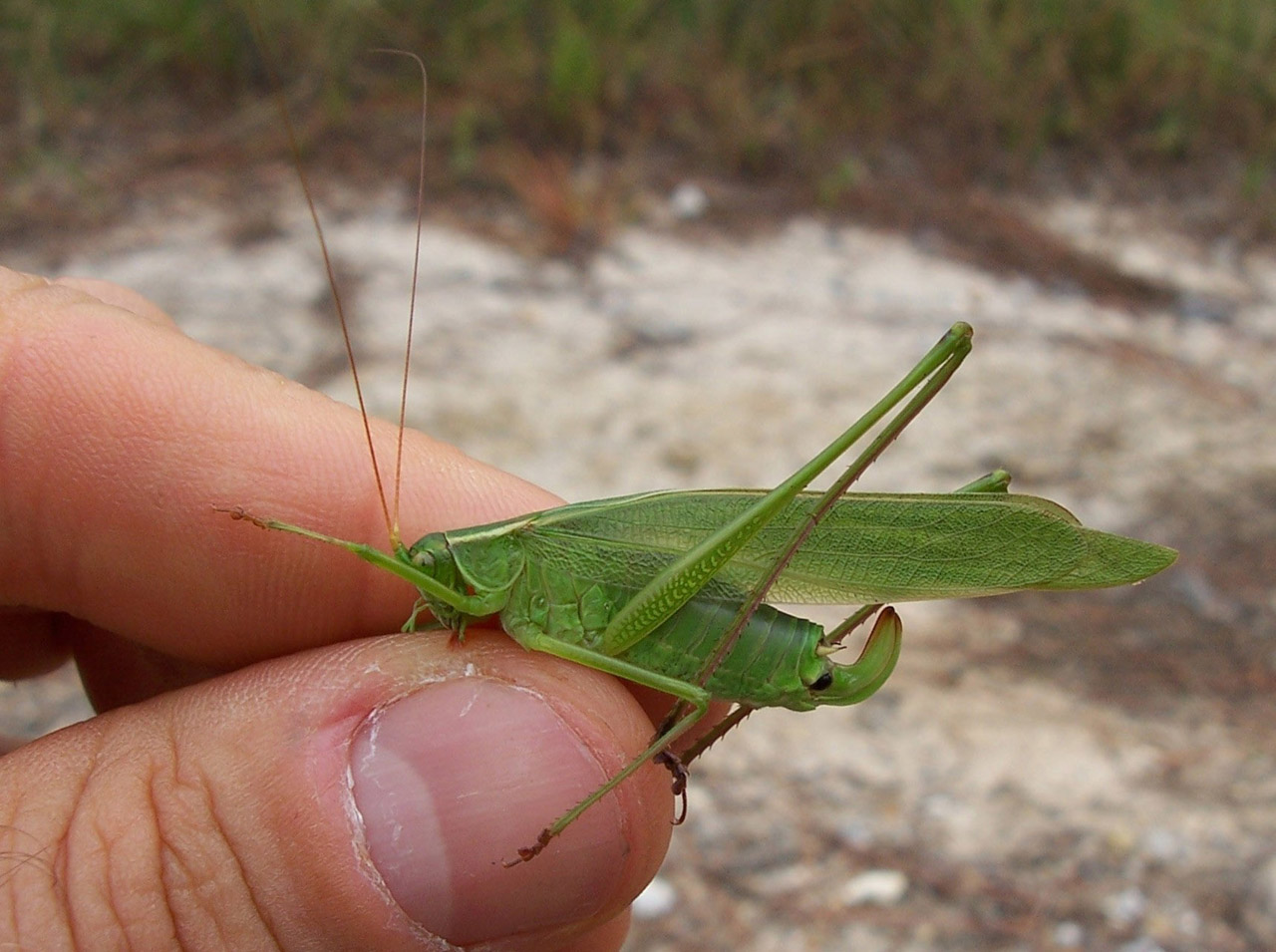 Female, Rapides Parish, Louisiana, held so as to reveal the nearly right-angle bend of the dorsal ovipositor.