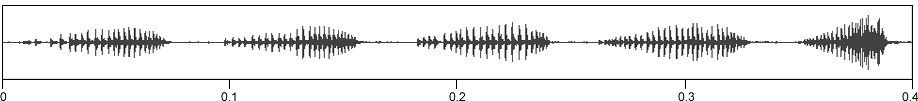 Last five syllables of phrase of slow-pulsed song.