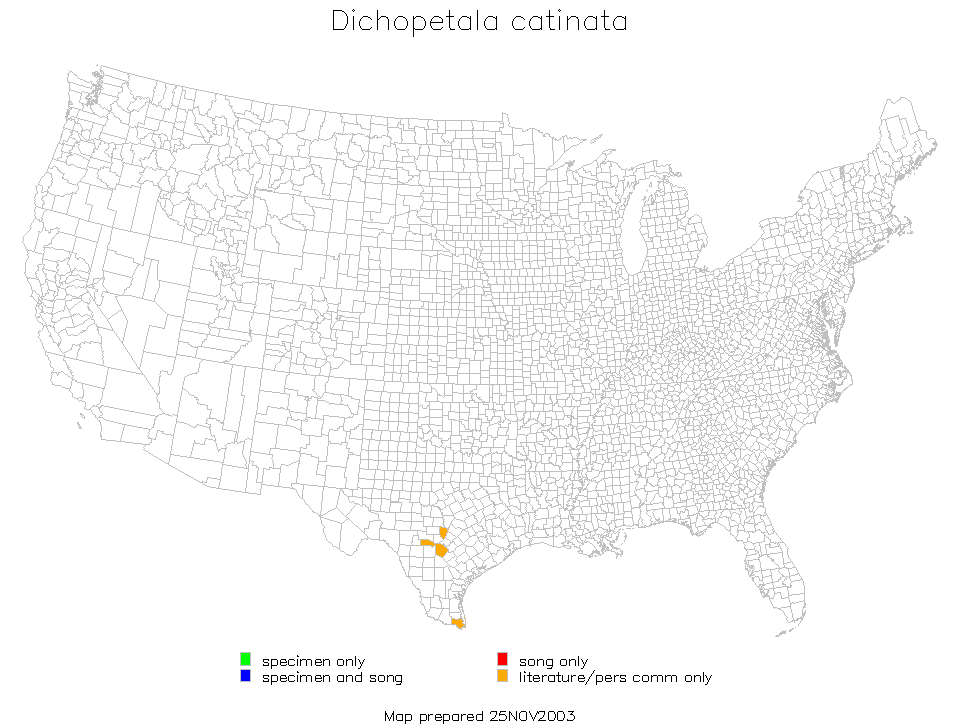 Dots show county records; shaded area shows likely general distribution.
