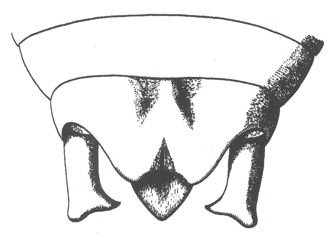 Drawing of dorsal view of apex of male abdomen, by A. B. Gurney.