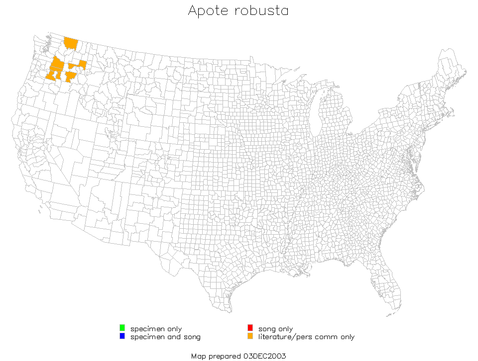 Dots show county records; shading shows likely general distribution.