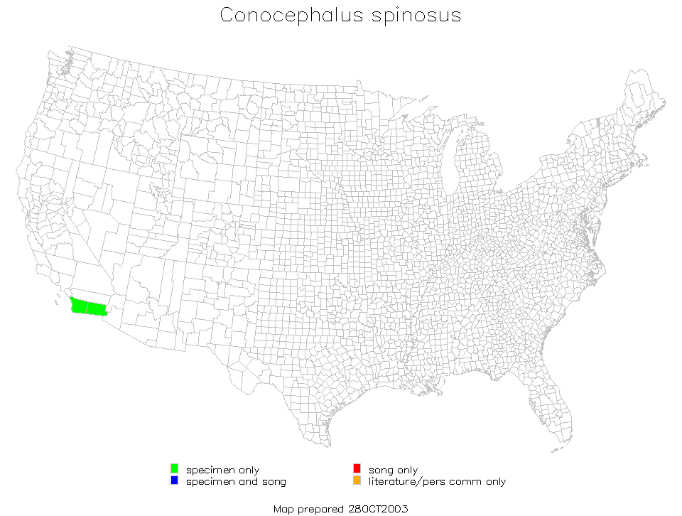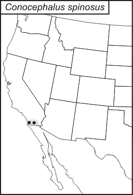 Conocephalus spinosus is found in Imperial and San Diego counties, California.
