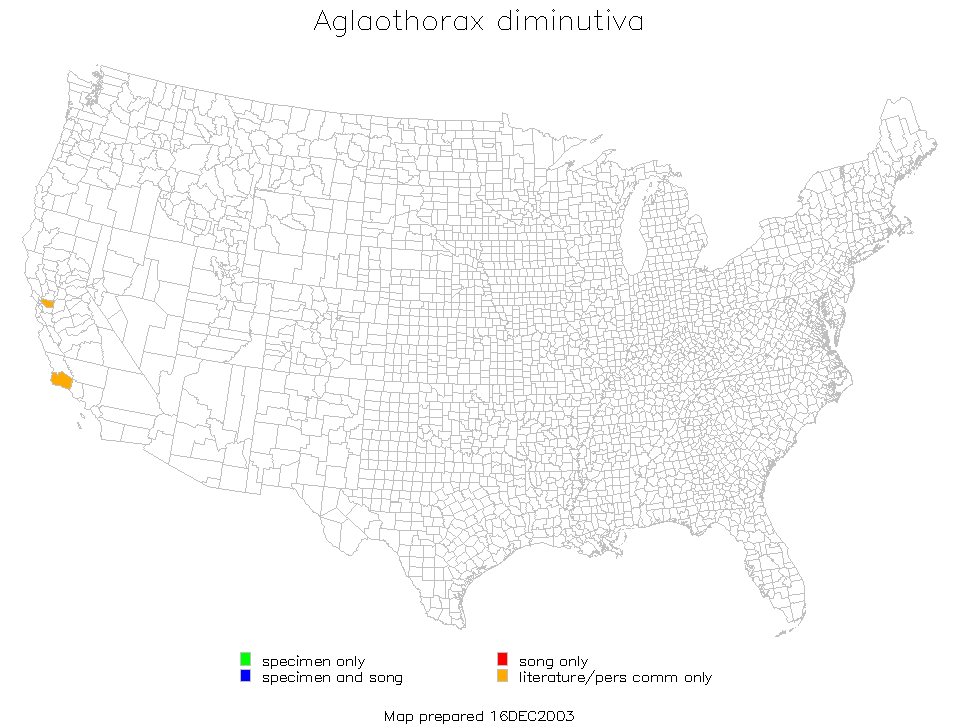 Aglaothorax diminutiva is found in the interior South Coast Ranges of California.