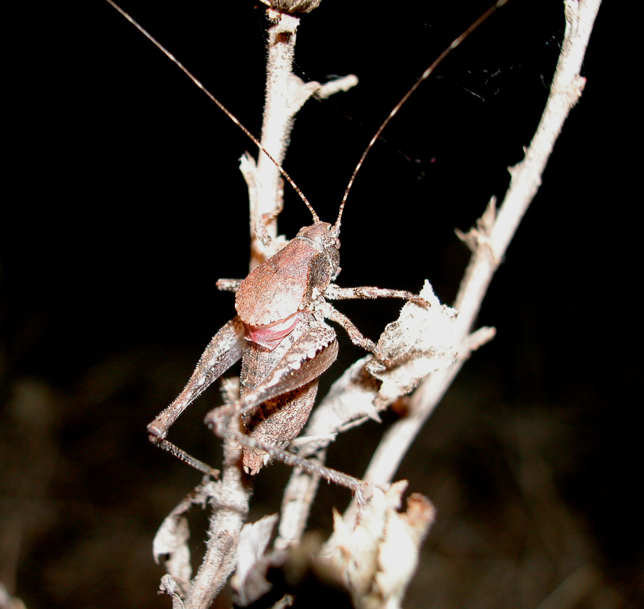 Stridulating male, Upper Oso Campground, Sierra Madre Mountains, Santa Barbara County, California.
