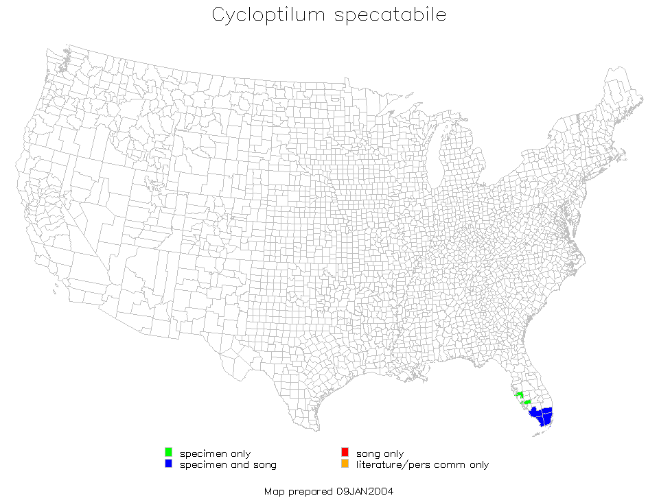 (Note: Monroe County, Florida, includes the southwest portion of the tip of mainland Florida and the upper and lower keys. These three parts of that county are mapped separately in the "dot maps" but not in the computer-generated distribution maps, which are strictly at the county level.)