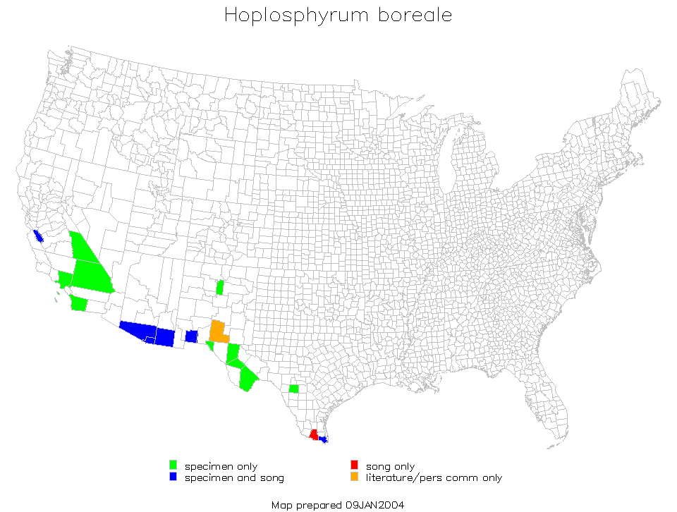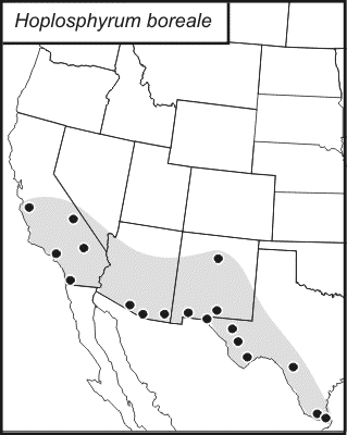 Hoplosphyrum boreale is found in the West Region (lower part of California) and Southwest Region (southern Arizona, New Mexico, and southern border of Texas) in the United States.