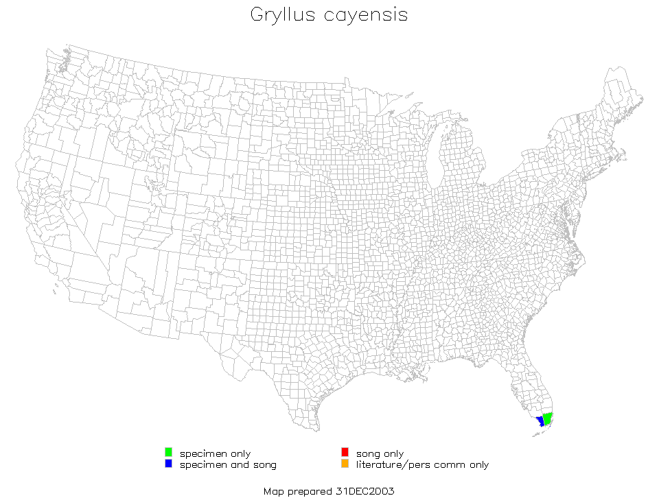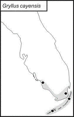 Gryllus cayensis is found in the southern tip of Florida and the Florida Keys.