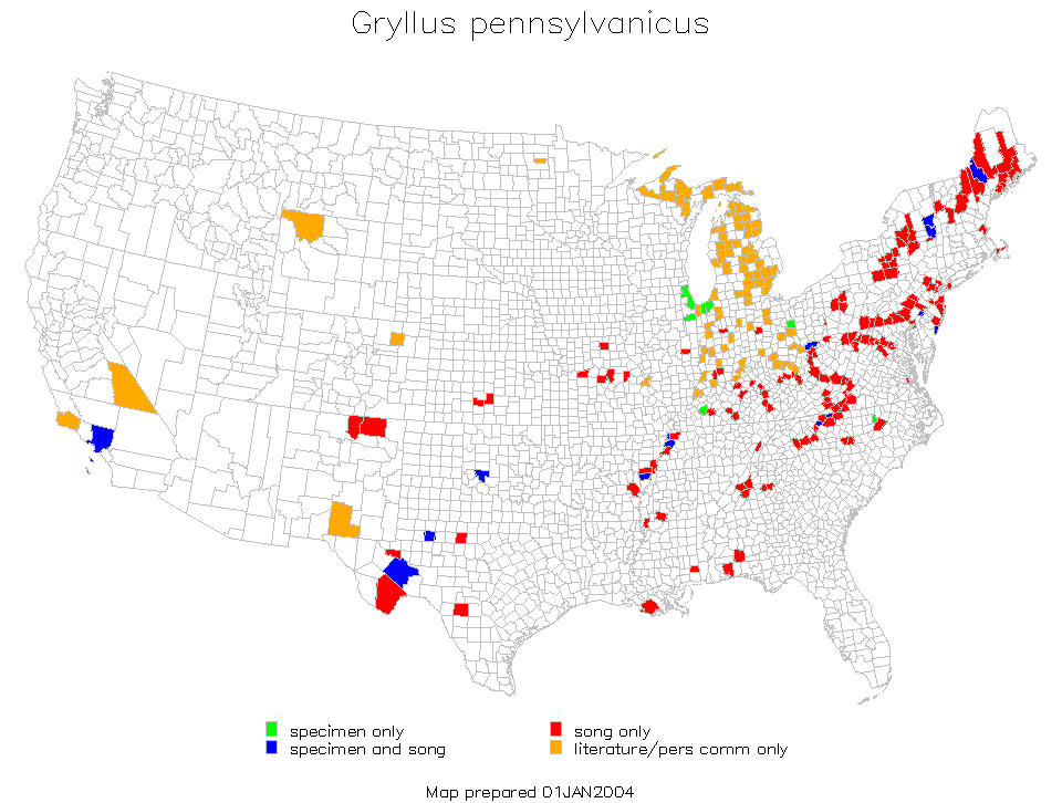 The computer-generated map shows four records near the Gulf coast based on song. These may be