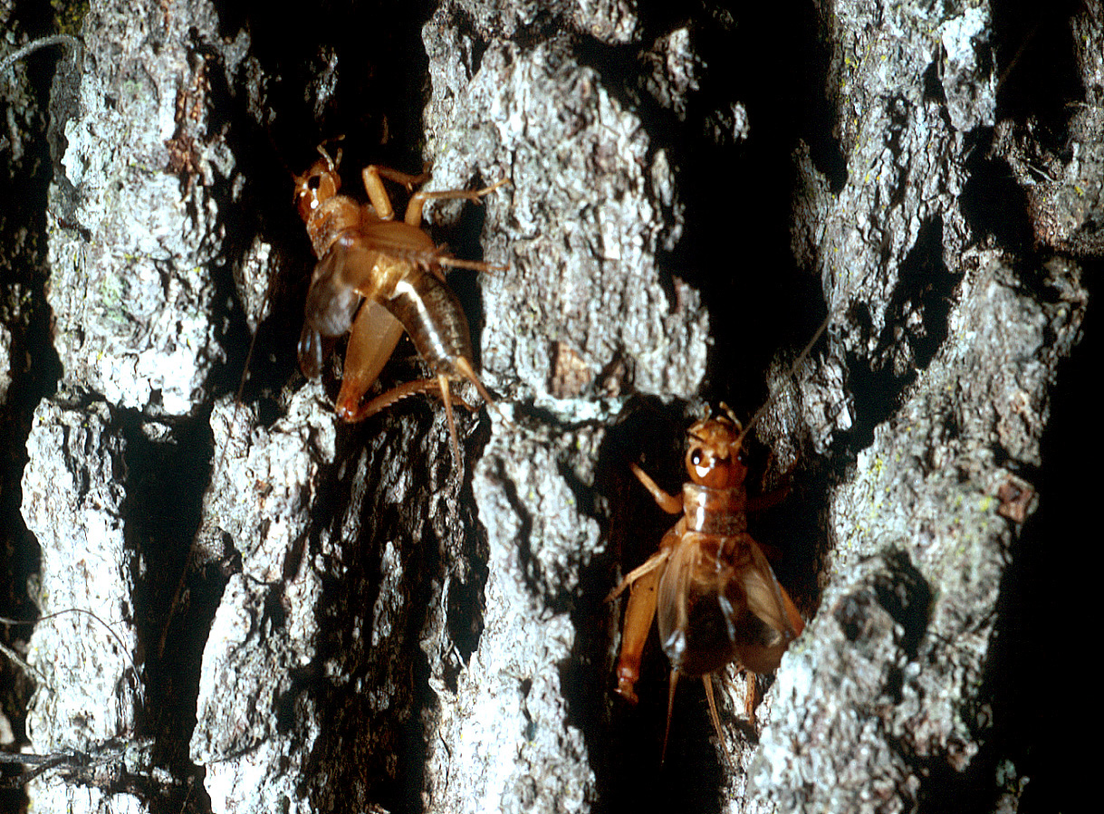 Two males calling from tree trunk, Gainesville, Florida.
