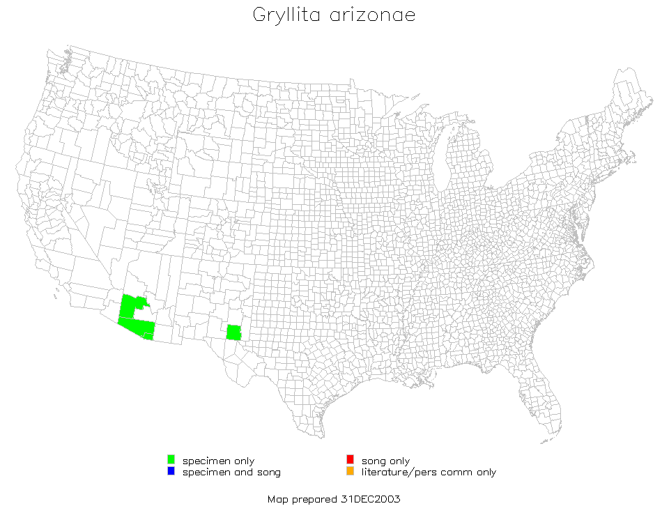 Gryllita arizonae is found in the Southwest Region of the United States (Arizona and New Mexico).